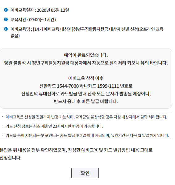 대상자로 지정되셨다면 안내에 따라 예비교육과 카드신청을 진행해주시면 됩니다.