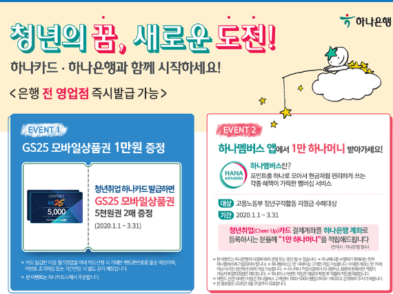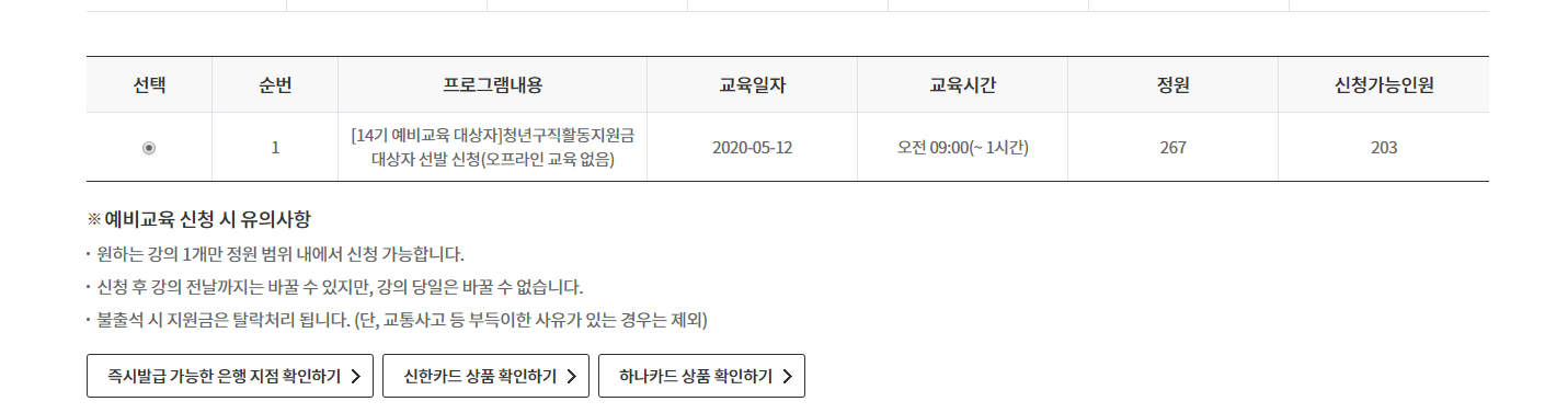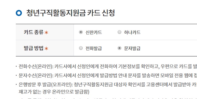 청년구직활동지원금 카드종류 (신한카드,하나카드)