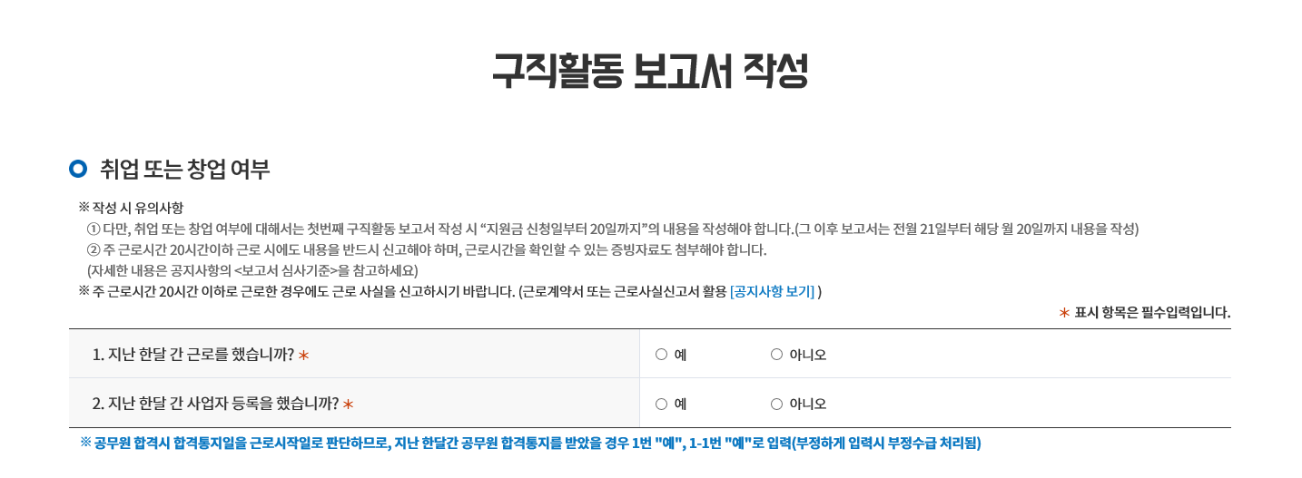 만약 해당월에 취업이나 창업시 취창업에 대한 보고를 하여야합니다.
