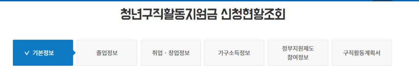 신청서류작성시 진행되는 과정은 [기본정보,졸업정보,취업창업정보,가구소득정보,정부지원제도참여정보,구직활동계획서] 를 작성하여야 하며 이때 필요한 서류는 [제적증명서 or 졸업증명서, 가족관계증명서]가 필요합니다.