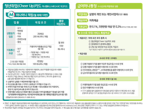 청년구직활동지원금의 발급가능카드는 신한카드와 하나카드로 2종류가있으며 두카드 카드혜택에 다른점이있으니 살펴보신후 발급받으시길 바랍니다. 딱히 특별히 좋은 혜택은 없어서