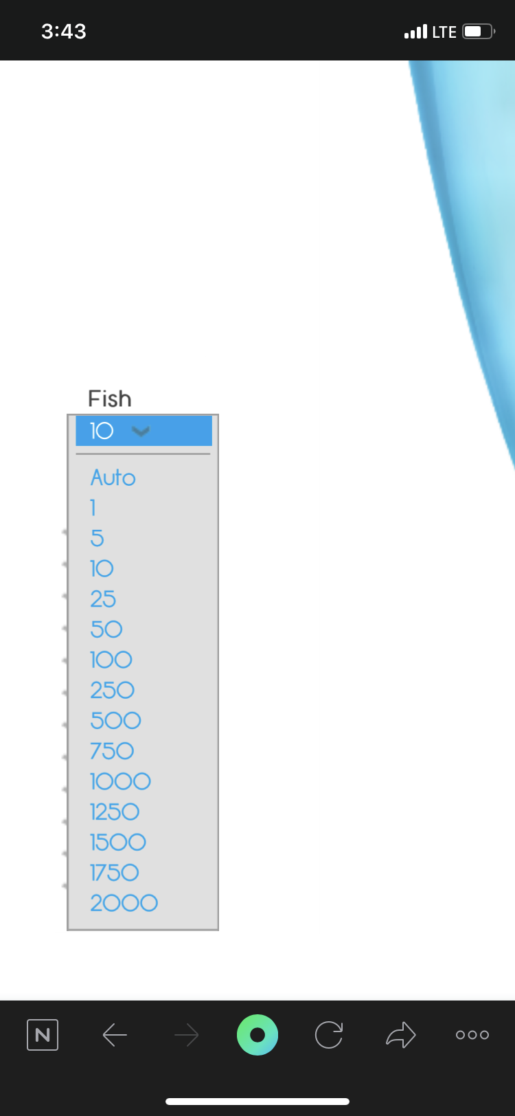 fisibowl를 시작해보기위해서는 왼쪽 하단의 fish 물고기 마릿수 선택항목을 들어가주세요. 그리고 그중 Auto 오토항목을 선택해주시면 이제 페이지에서 자동으로 물고기를 추가하여 최대 들어갈수 있는 물고기숫자를 표기해줍니다.