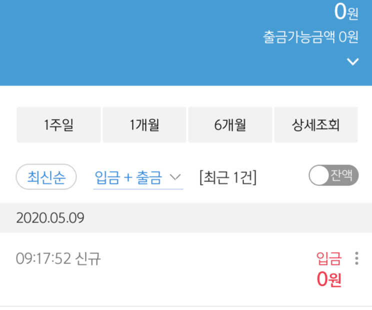 ※신한 SOL앱내의 계좌조회로는 확인할수없습니다.