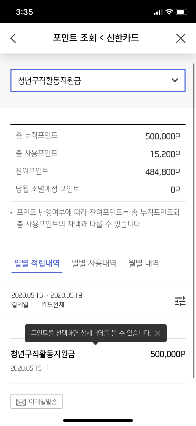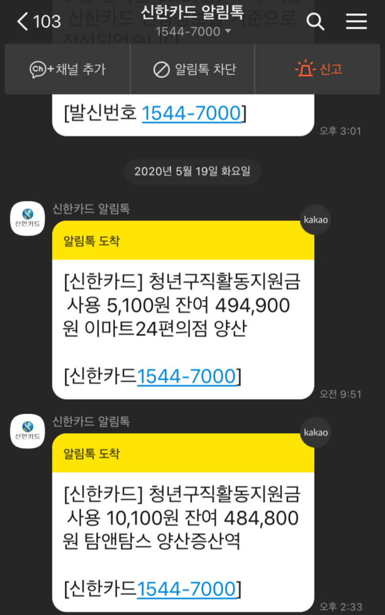 청년구직활동지원금 신한카드 사용내역 잔액확인방법