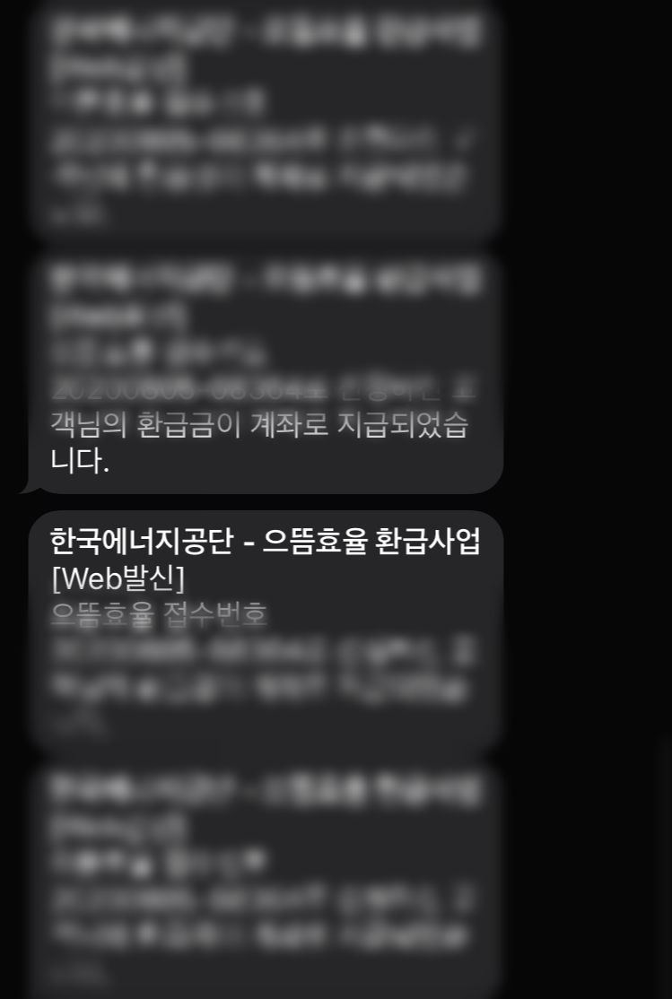 환급이 완료되어 계좌로 돈이 입금되었을때 문자를 통해 환급금이 계좌로 입금되었다고 알림이 도착하였고 계좌를 확인하니 신청했더 환급금 그대로 입금된걸 확인할수있었습니다. 비싼 가전제품을 구입할때 현명한 구매생활을 위해 한푼이라도 할인이 필요할때 본인이 구매할제품 구매한 제품이 으뜸효율제품인지 확인하시고 저처럼 환급금을 받으실수 있다면 챙기시는것도 좋을거 같네요 ㅎㅎ