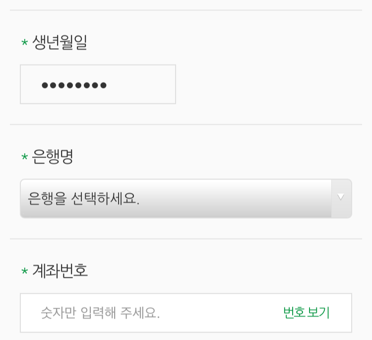 신청시 필요정보입력