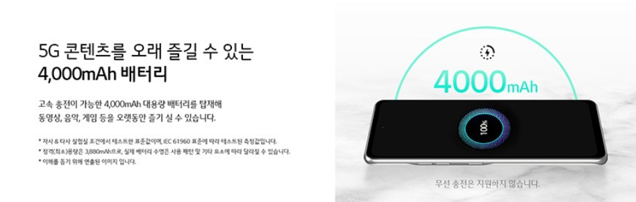 | 그외 지원항목 | LG페이,3.5mm이어잭,밀스펙,보호필름,케이스,측면지문인식,노크온 |