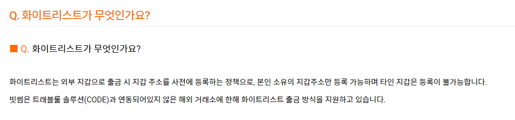 업비트의 개인지갑 주소관리와 비슷한 느낌인 비썸의 화이트리스트입니다. 본인 소유의 지갑을 등록 하면 그후 외부 지갑으로 출금에 유용한 기능인데 메타마스크 뿐아니라 해외거래소도 인증할수있습니다. 증빙이미지(신분증사진)등을 보내야하기 때문에 화이트리스트 등록하기 귀찮긴한데 필요하신분은 참고하시길