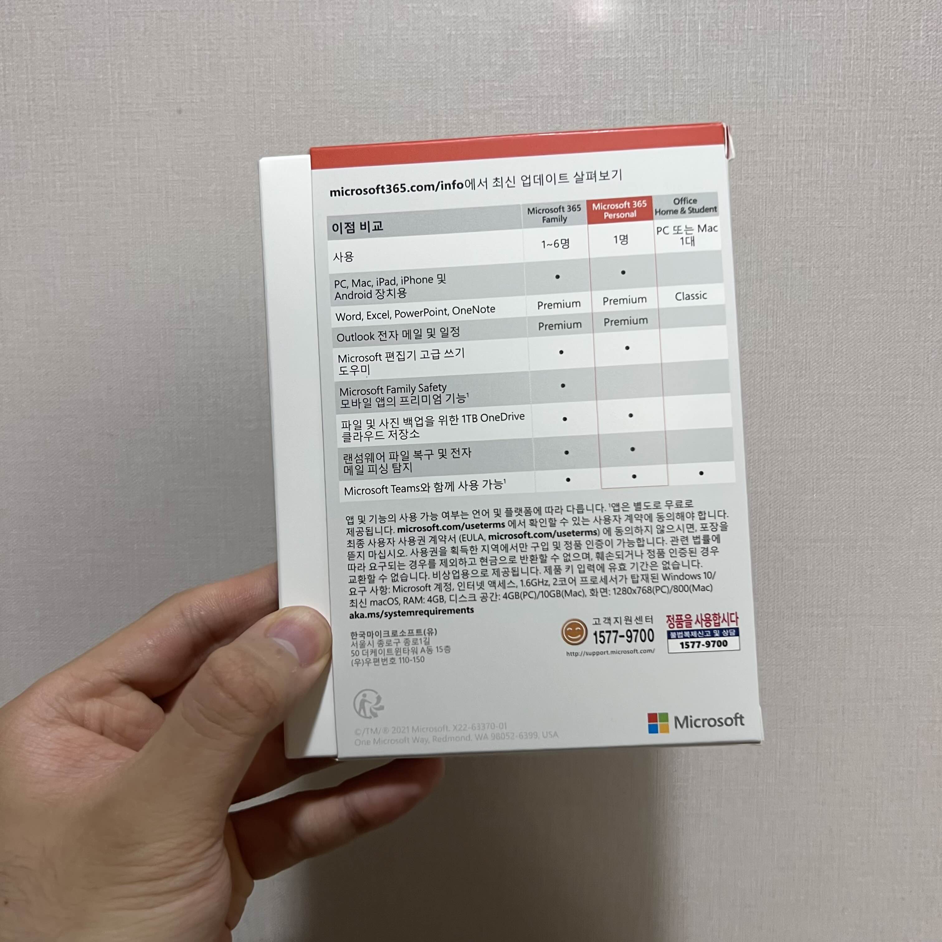 제가 구매한 제품은 마이크로소프트 365 퍼스널 제품으로 1인이 사용가능한 1년형 상품입니다.
