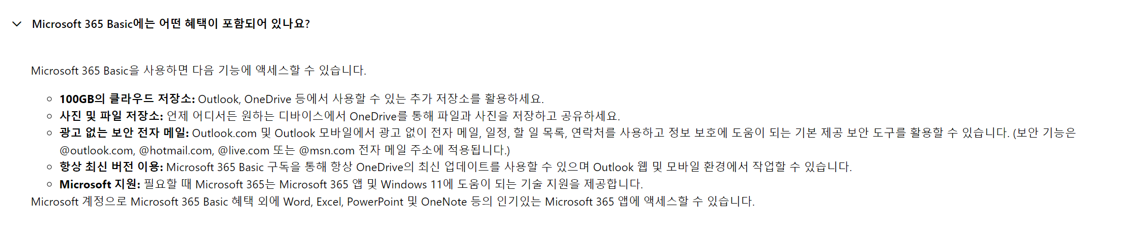 고정비용에 대한 부담감을 줄이고자 마이크로 소프트 365에는 베이직(BASIC)이라는 요금제도 추가로 생겼는데요. 이름처럼 딱 필요한 부분만 실용적으로 사용할분들에게는 가격에 대한 부담감도 좀 줄이면서 정품을 쓸수가있는데