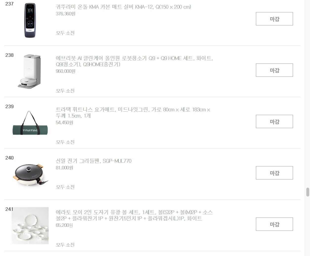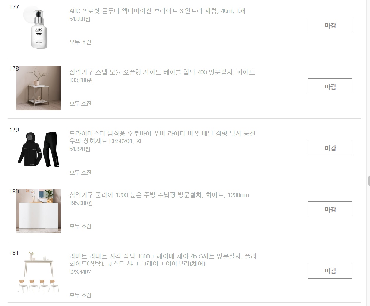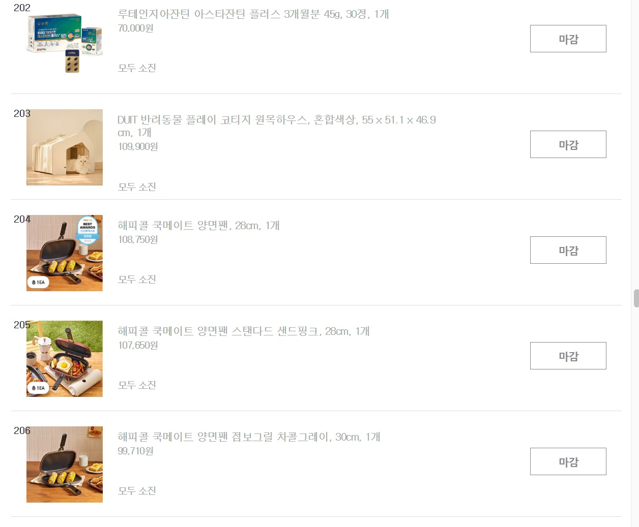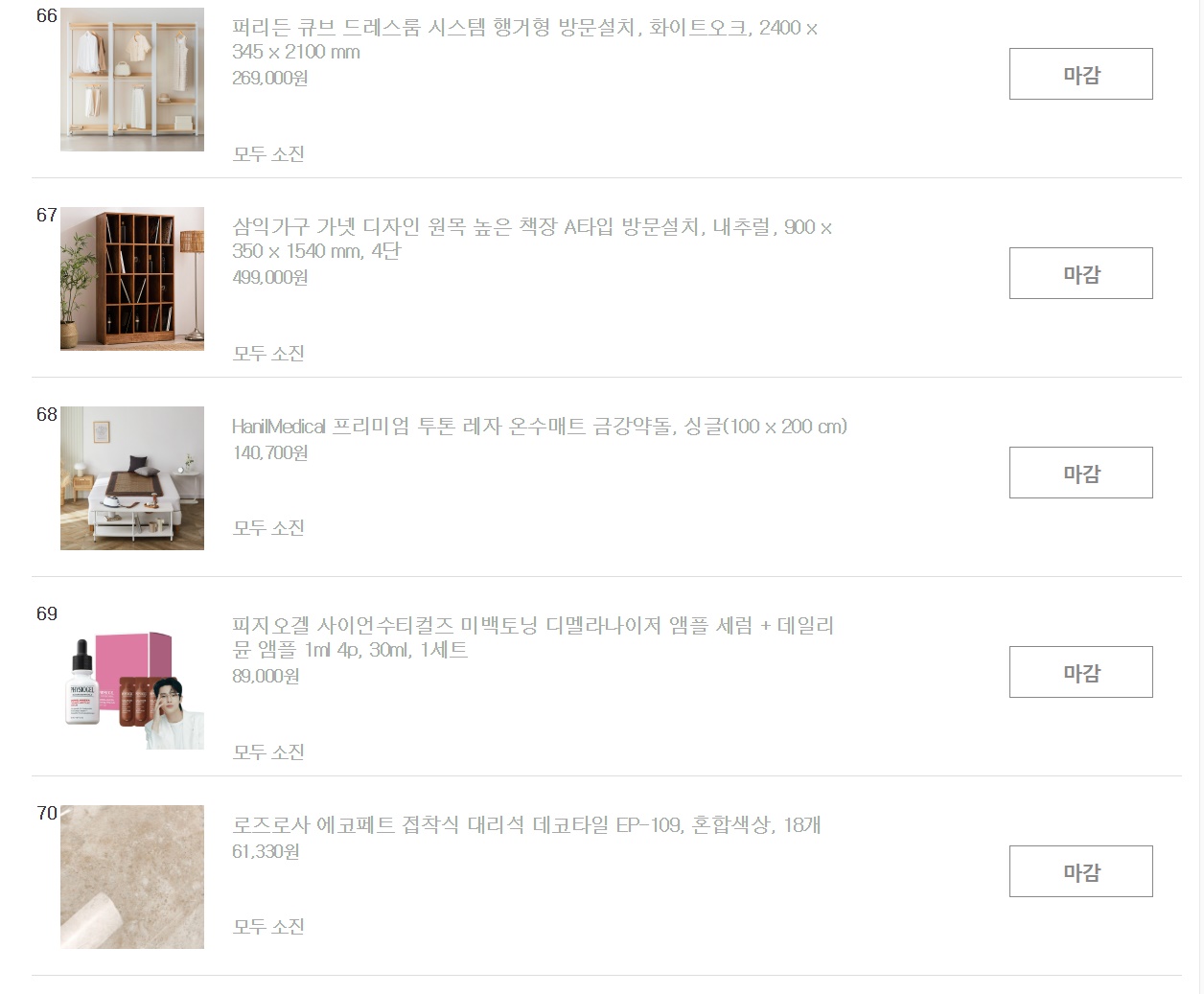 쿠팡체험단 고가라인 당첨후 리스트입니다.