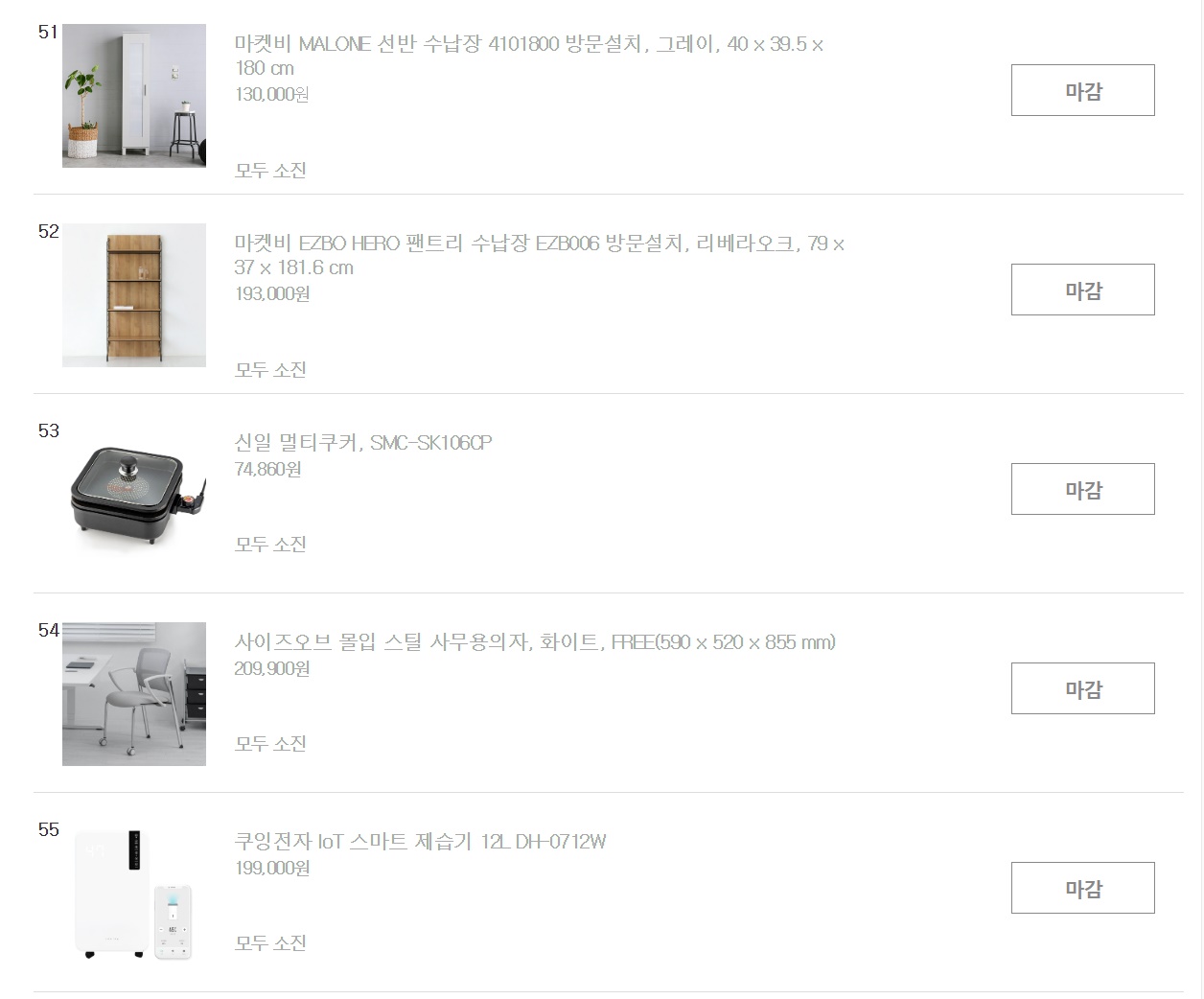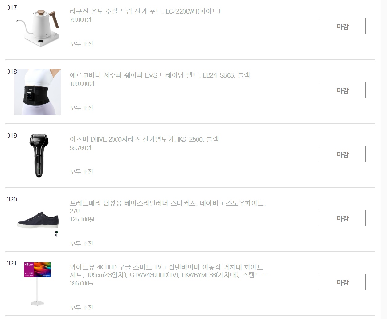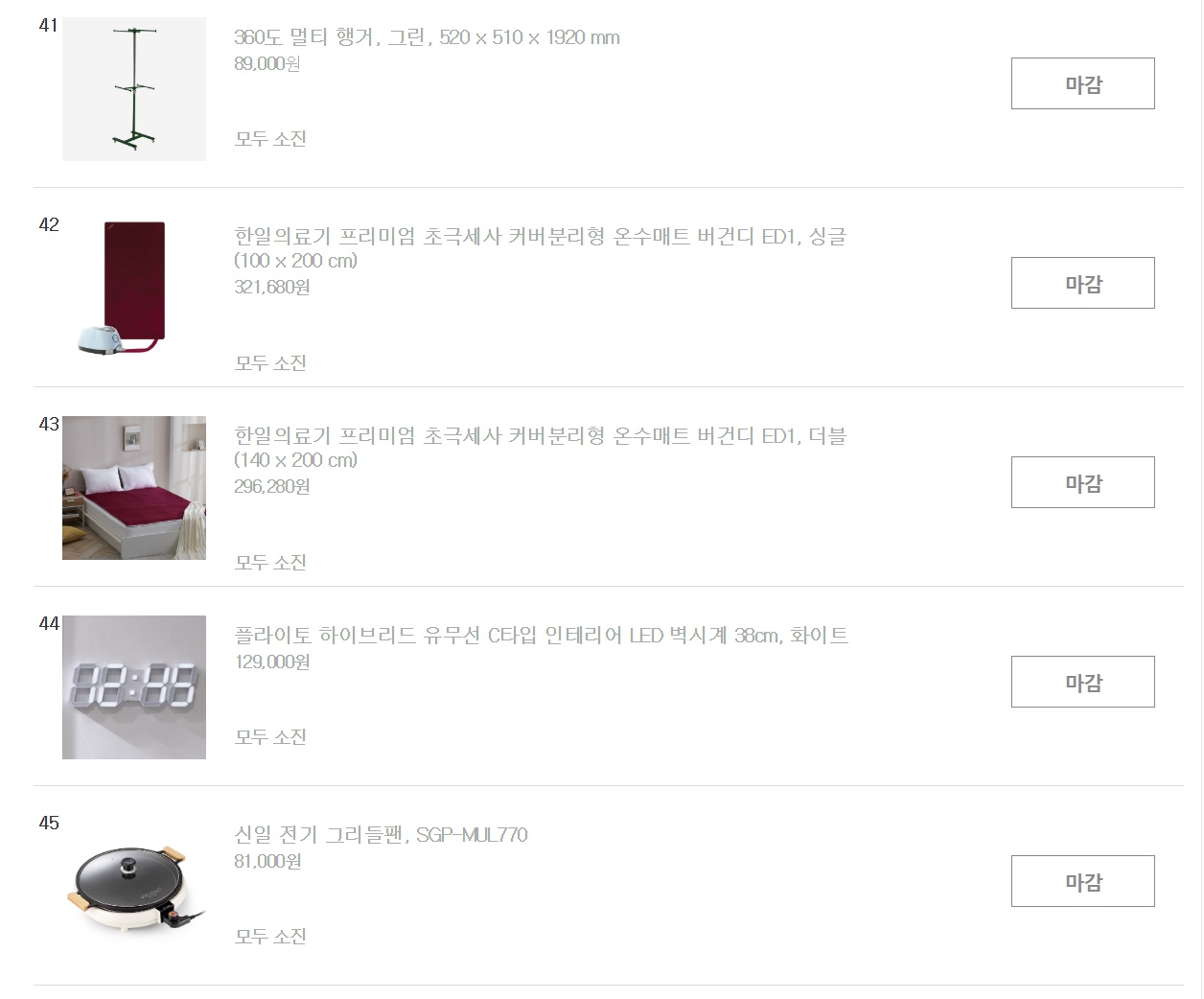 쿠팡체험단 고가라인 당첨후 리스트입니다.