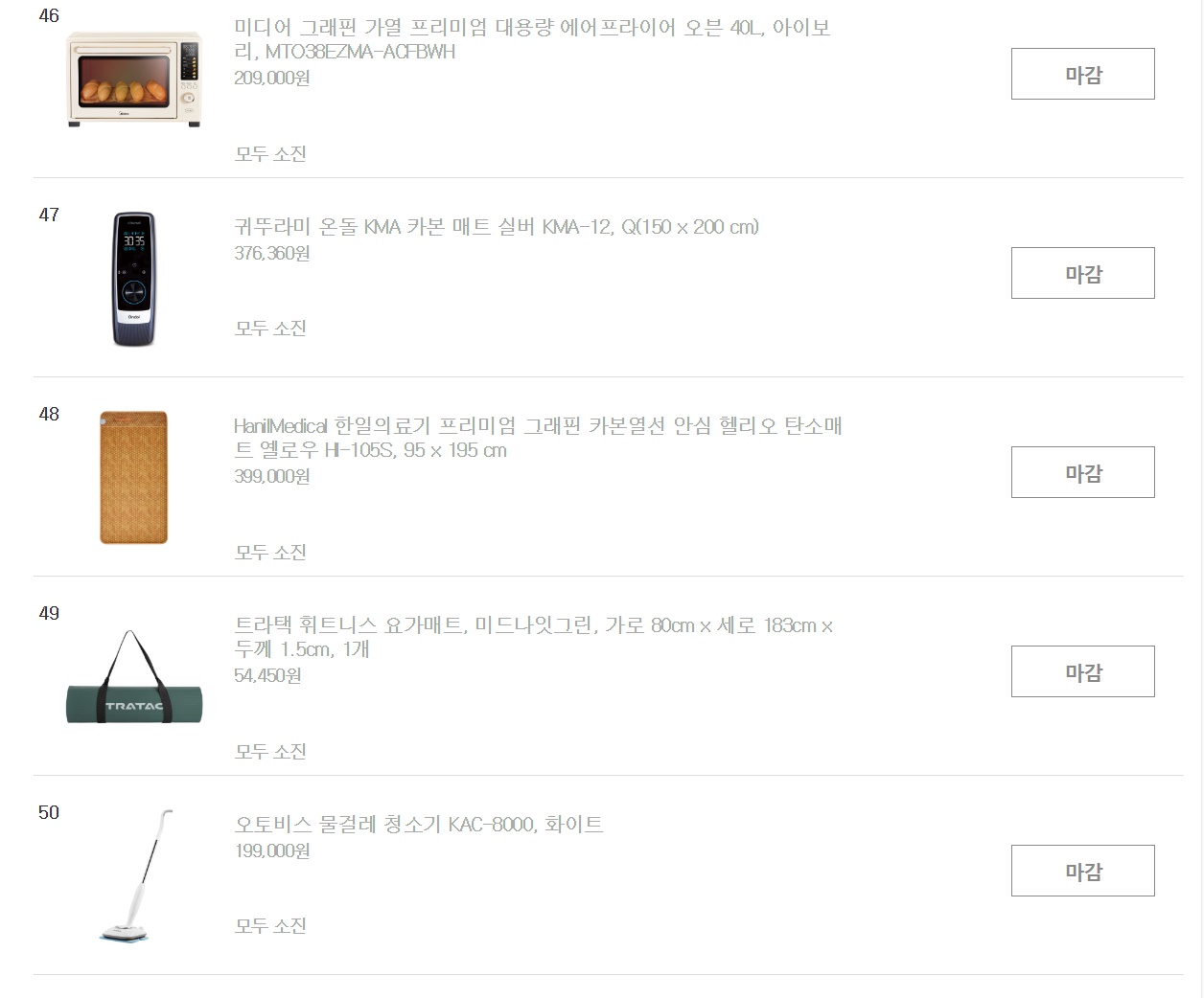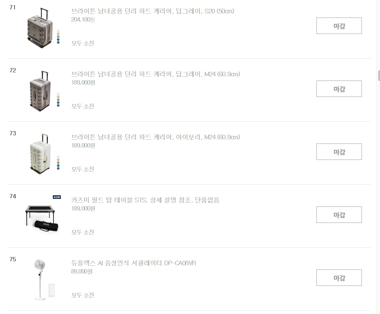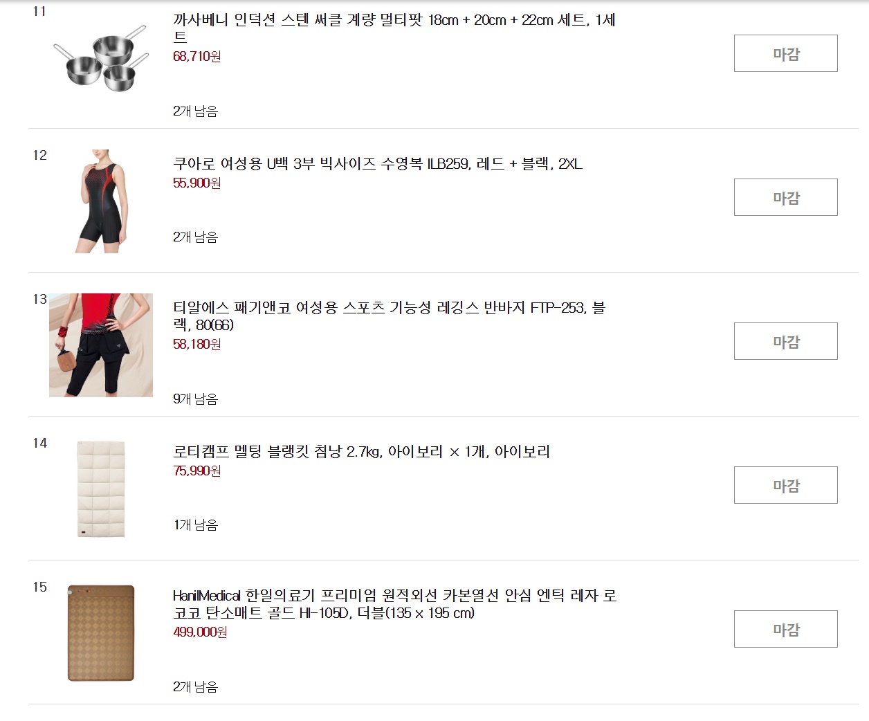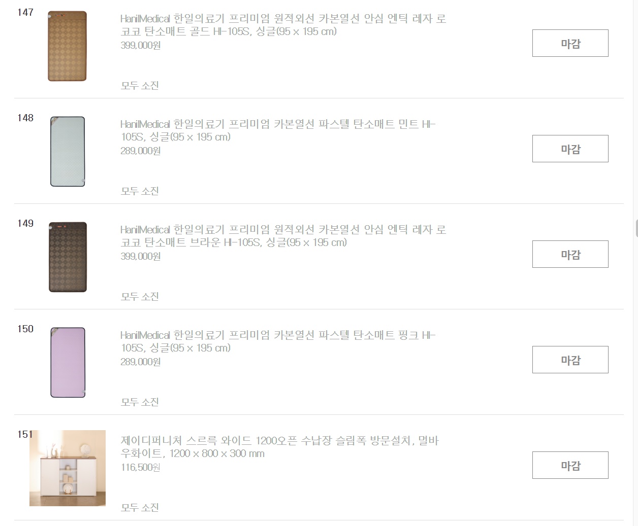 쿠팡체험단 고가라인 당첨후 리스트입니다.